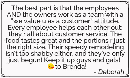Jimmy and Angela’s transformation of the old Brown Derby into The Lakehouse has been astonishing. The foundation of the transformation is their dedication to providing fantastic service, a supportive working environment and giving back to the community that raised them. It doesn’t hurt that they have a fabulous sense of humor and an insane work ethic. Jimmy and Angela work side-by-side with their staff to ensure that every customer has a great experience at The Lakehouse.